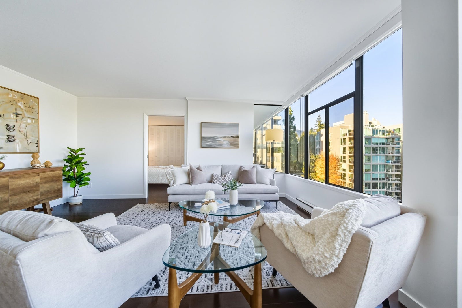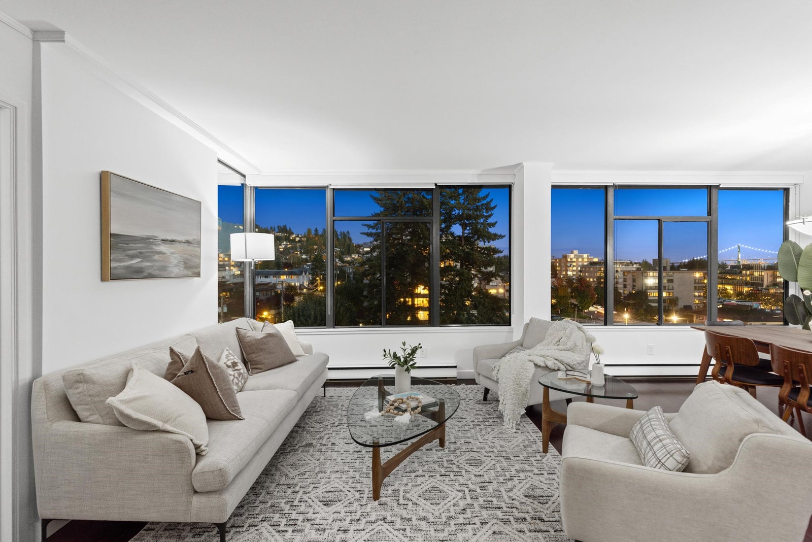 EMBRACE THE AMBLESIDE SEASIDE LIFESTYLE! Savour gorgeous close-in OCEAN VIEWS of the Lions Gate Bridge, city, harbour & mountains from this quiet SE corner home. This bright, airy 2-bedroom + den suite offers generous room sizes, oversized windows, and in-suite laundry — perfect for comfortable one-level living. THE WESTERLIES is a sought-after, solid concrete building known for its beautifully manicured gardens and friendly community. Enjoy amenities including tennis courts, saunas, workshop, secure parking, and wheelchair access. Recent updates include repiping (2022), new elevators (2024), roof & more. Includes parking, storage locker, and newer appliances. An easy stroll to the seawall, beaches, Fresh St. Market, Crema, Earls & all the charm of Ambleside village — ideal for downsizers